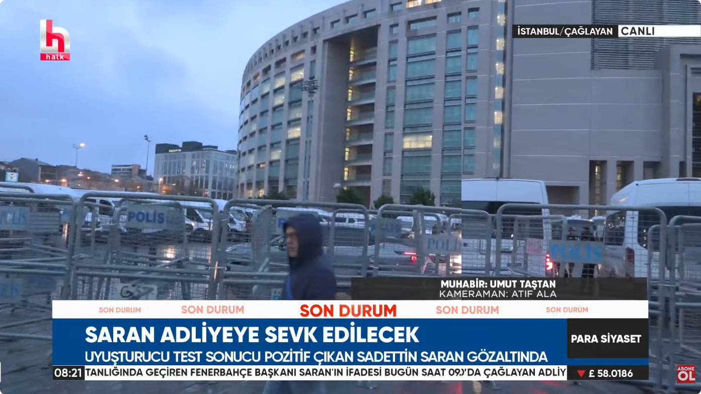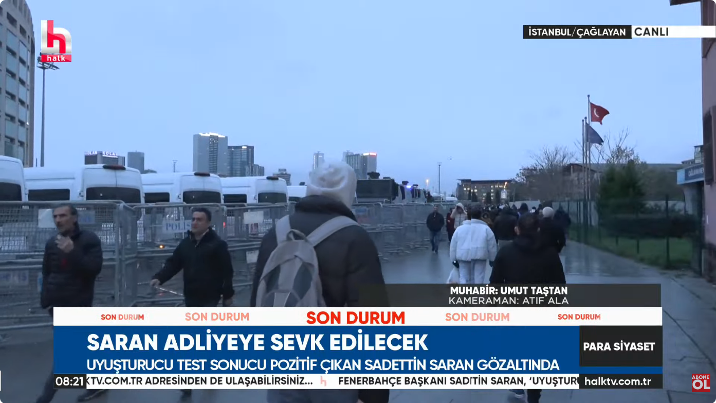 Saran’ın adliyeye getirilmesi nedeniyle birçok Fenerbahçe taraftarının destek için gelmesi bekleniyor.