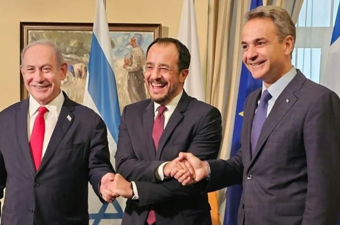 İsrail Başbakanı Binyamin Netanyahu – GKRY Lideri Nikos Hristodulidis – Yunanistan Başbakanı Kiryakos Miçotakis
